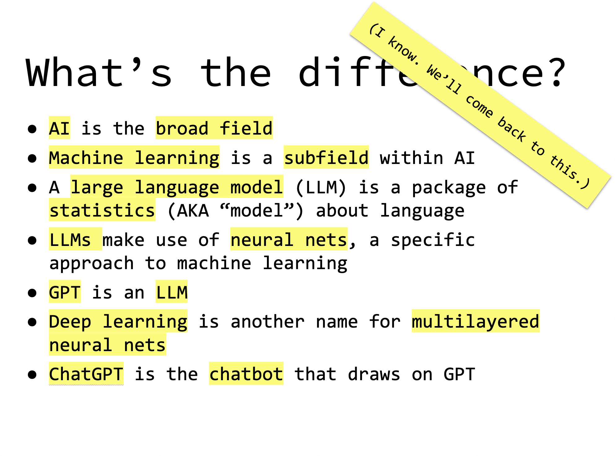 - Conversations about AI tend to be more productive if we have more specificity about what we are talking about and how they work
